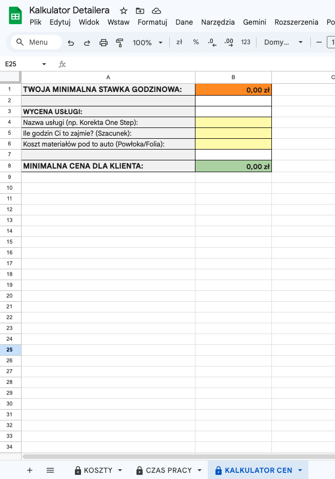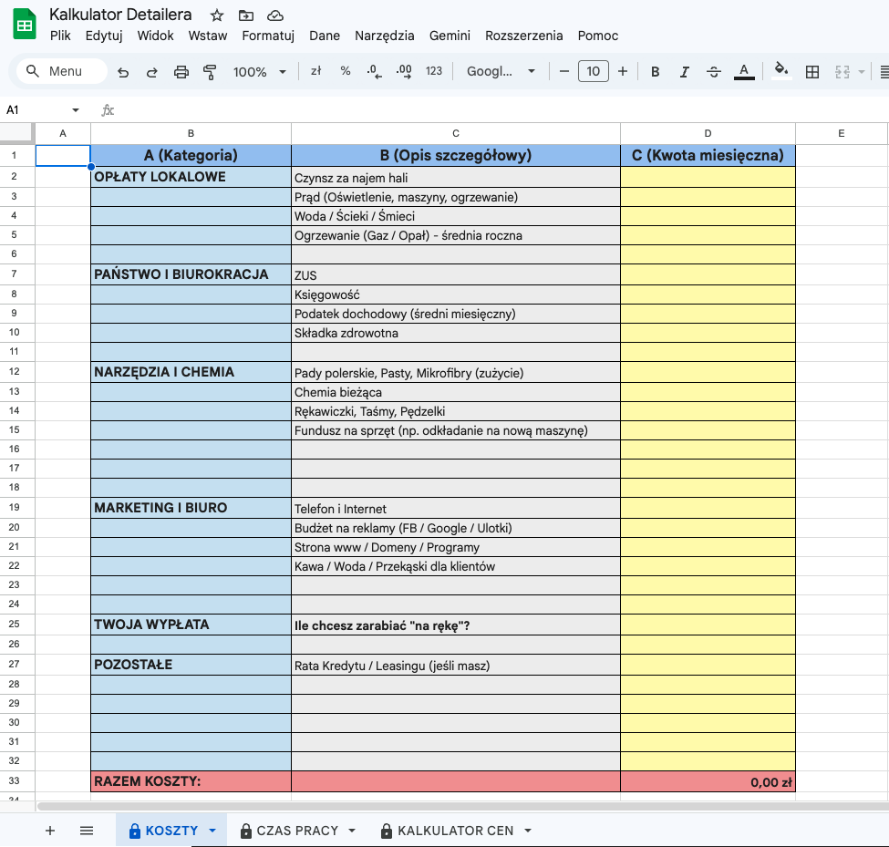 Gotowy plik Excel: Kalkulator Detailera (Wartość: 35 zł)